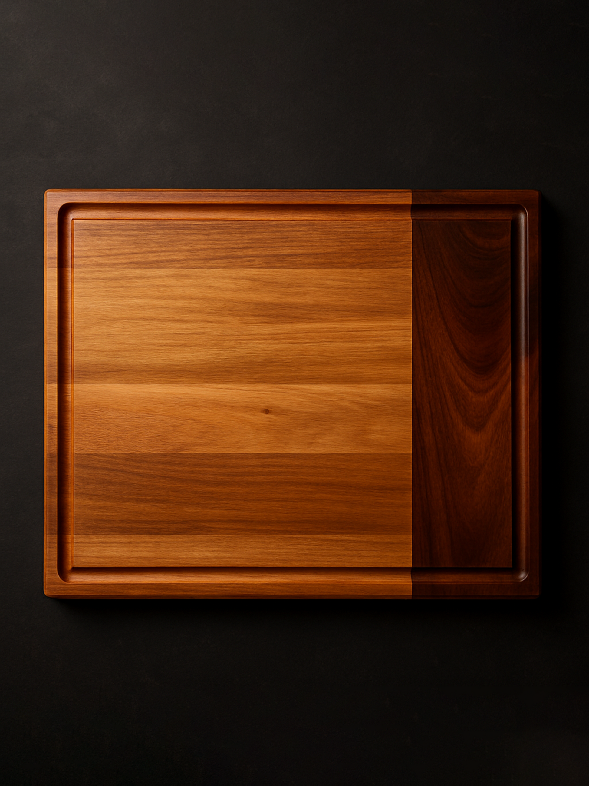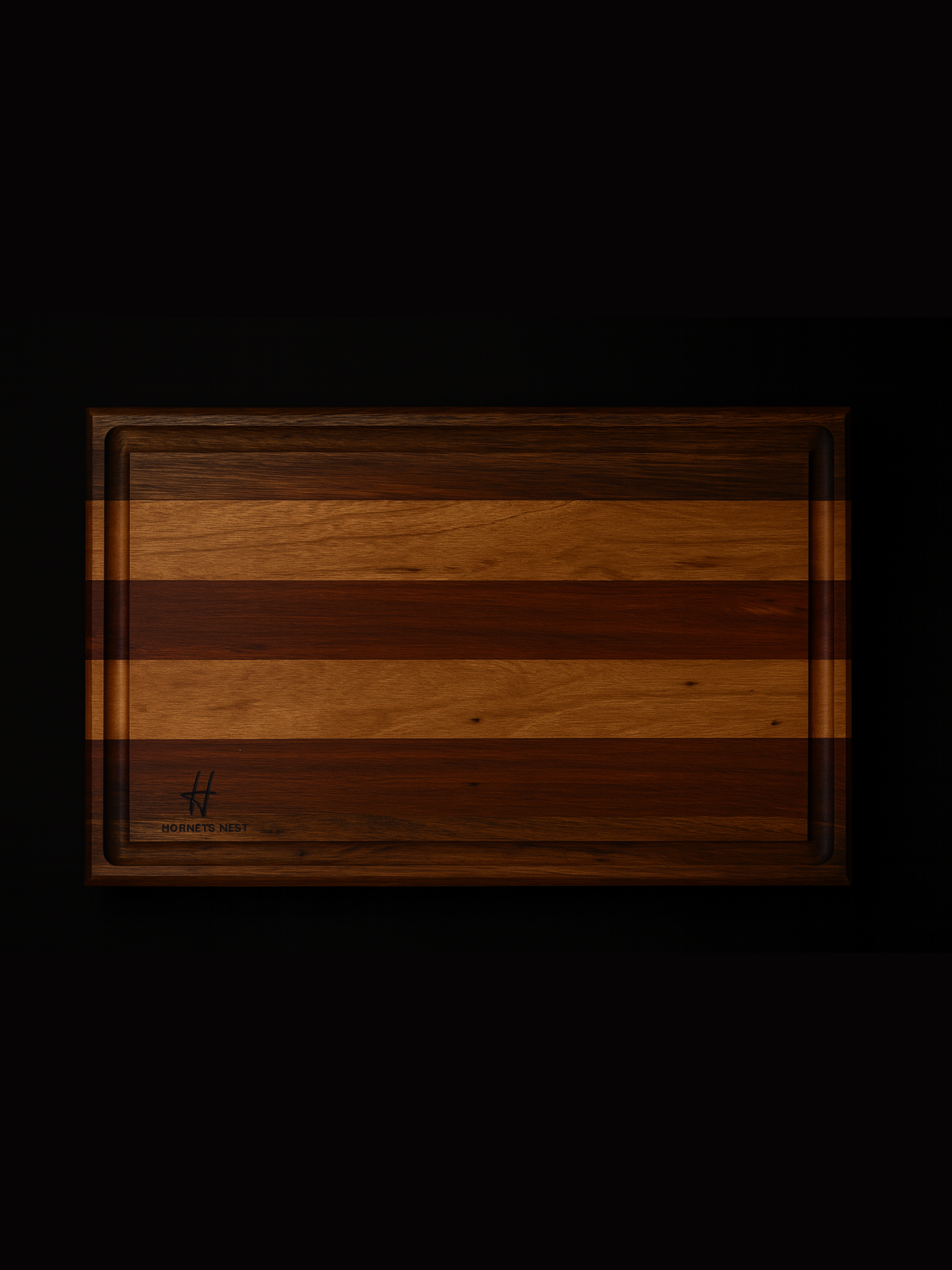 Large underboard finger holds, juice grooves and rubber feet
